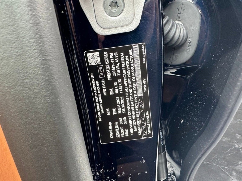 - Radio: Aston Martin Premium Audio System -inc: 800-watt, 10.25" touchscreen central display, wired Android Auto, AM/FM/DAB, Apple CarPlay Ultra, 14 speakers, Bluetooth® mobile phone connectivity w/audio streaming, natural voice control, online connected car system w/Aston Martin companion app, online satellite navigation system, SiriusXM satellite radio and 4 USB-C ports