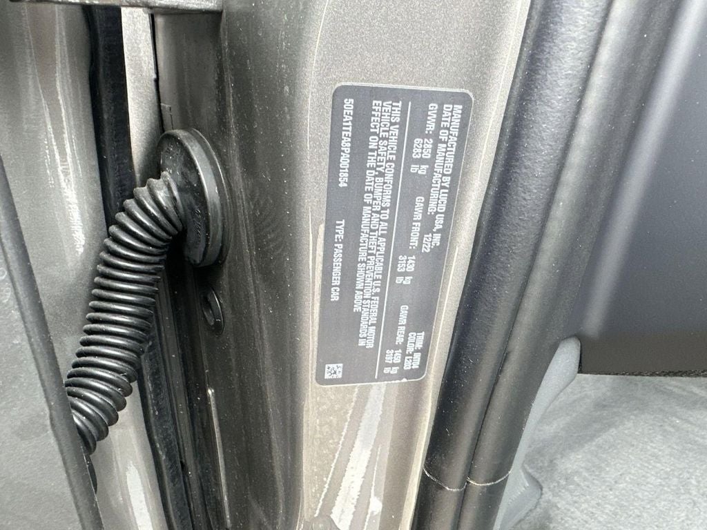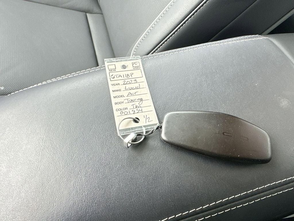 Cosmos Silver Metallic 2023 Lucid Air Touring AWD 1-Speed Automatic Electric Motor Vehicle has 4 keys, Air Touring, 4D Sedan, Electric Motor, 1-Speed Automatic, AWD, Cosmos Silver Metallic, Lucid Black w/Ext Nappa Full-Grain/Prem Natural Grain Lthr Seats, Android Auto Wired & Wireless Integration, Apple CarPlay Wired & Wireless Integration w/Siri, Auto-dimming door mirrors, Auto-dimming Rear-View mirror, Door auto-latch, Front Bucket Seats, Genuine wood console insert, Head restraints memory, Heated door mirrors, Heated front seats, Heated steering wheel, Illuminated entry, Memory seat, Nappa Full-Grain & Prem Natural Grain Lthr Seats, Navigation System, Turn signal indicator mirrors, Ventilated front seats, Wheels: 20 Aero Lite Cast Alloy.