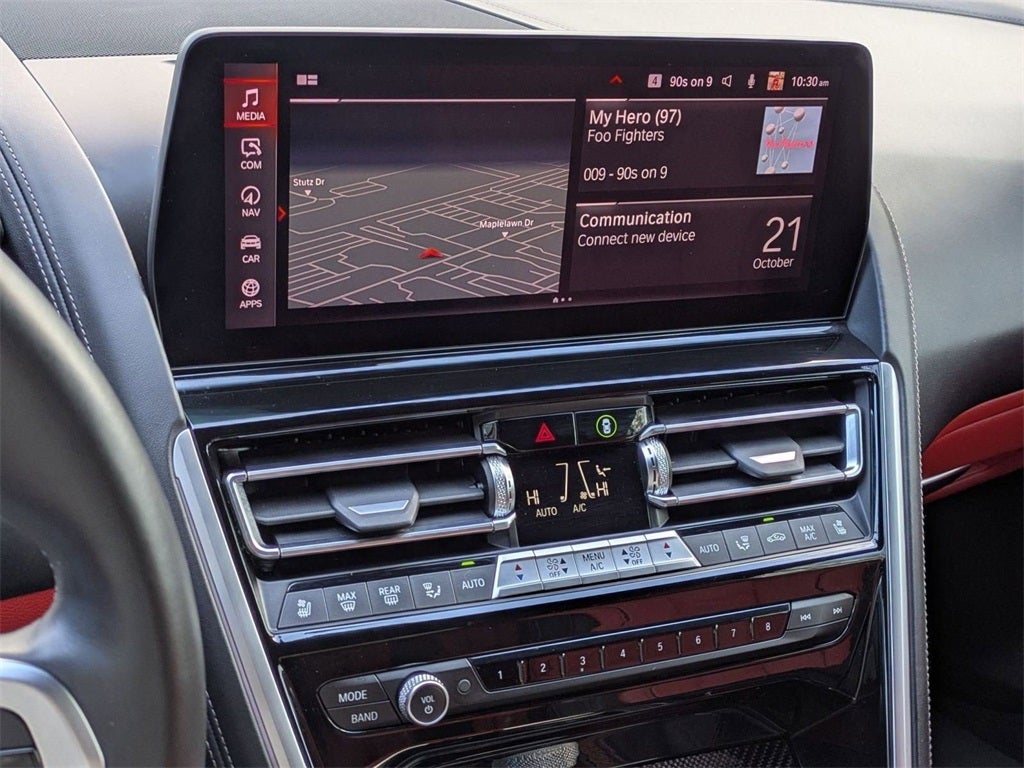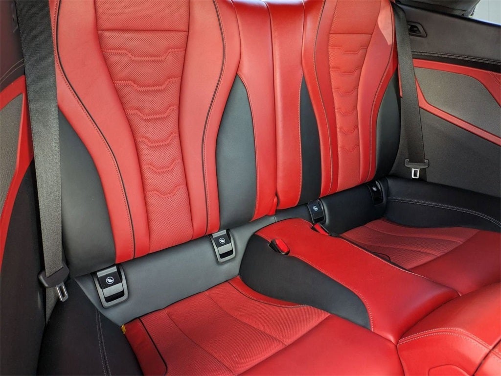 Skyscraper Gray Metallic 2024 BMW 8 Series M850i xDrive AWD 8-Speed Automatic Sport 4.4L V8 32V TwinPower Turbo 8 Series M850i xDrive, 2D Convertible, 4.4L V8 32V TwinPower Turbo, 8-Speed Automatic Sport, AWD, Skyscraper Gray Metallic, Fiona Red/Black Fiona Red/Black Extended Merin, Active Blind Spot Detection, Active Driving Assistant, Active Park Distance Control, Apple CarPlay & Android Auto Compatibility, Auto-dimming door mirrors, Bumpers: body-color, Connected Package Pro, Convertible roof wind blocker, Driving Assistance Package, Extended Merino Leather Upholstery, Extended Shadowline Trim, Front Bucket Seats, Front Center Armrest, Front Ventilated Seats, Heated door mirrors, Heated front seats, Heated Front Seats, Armrests & Steering Wheel, M Performance Package, M Shadowline Lights, M Sport Brakes w/Black Calipers, M Sport Professional Package, Navigation System, Parking Assistant Plus, Power door mirrors, Rear-View Camera, Surround View w/3D View, Turn signal indicator mirrors.