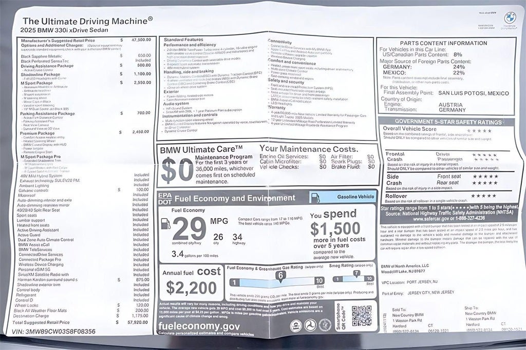 Black Sapphire Metallic 2025 BMW 3 Series 330i xDrive AWD 8-Speed Automatic Sport 2.0L 4-Cylinder DOHC 16V Turbocharged AWD.