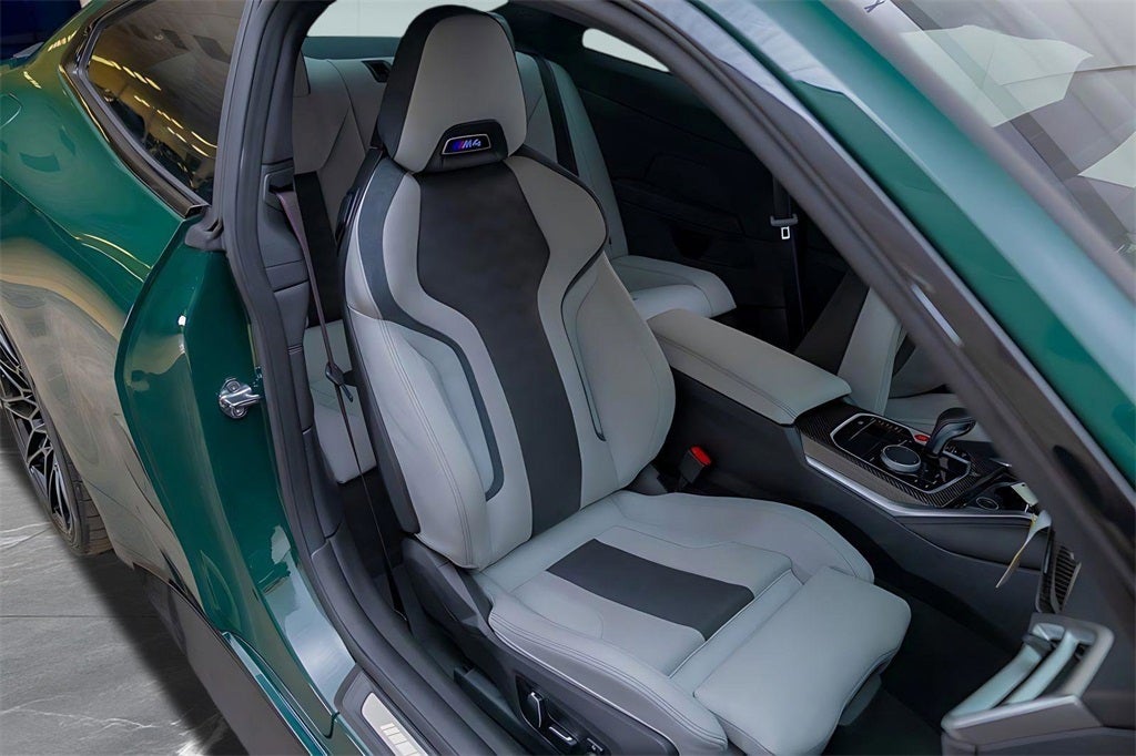Loaded Up M4 Competition xDrive in Special Order British Racing Green with M Carbon Exterior, Driving Assistance, Executive Package & More. CALL IN ADVANCE TO SCHEDULE A VIEWING 248-970-7946. British Racing Green Metallic ($4,500), Silverstone/Black Extended Merino Leather, Driving Assistance Professional Package ($1,700) with Active Driving Assistant Pro and Extended Traffic Jam Assistant, Parking Assistance Package ($700) with Parking Assistant Plus, Executive Package ($1,400), Heated Steering Wheel, BMW Curved Display with Head-Up Display, Power Tailgate, Remote Engine Start, 19/20 M Dual-Spoke Bicolor Wheels, Mobility Kit, M Shadowline Lights ($300), M Compound Brakes with Red Calipers, Comfort Access Keyless Entry, M Seat Belts, Carbon Fiber Interior Trim ($950), Front Ventilated Seats ($500), Active Guard, Full LED Headlights with Laserlight, Drive Recorder ($100), SiriusXM with 360L and 1-Year Platinum Plan, Extended Shadowline Trim, M Carbon Exterior Package ($4,700), Shadowline Exterior Trim, Anthracite Headliner.