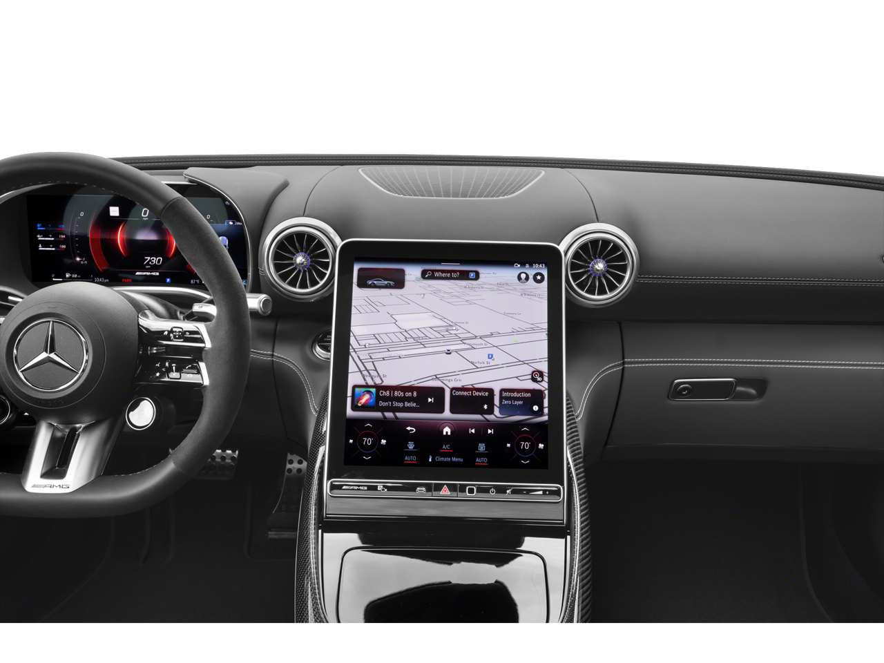 - Radio: MBUX Infotainment & Navigation System -inc: 11.9" central media display, 'Hey Mercedes' voice control, Bluetooth® connectivity, SiriusXM radio all-access w/trial period and smartphone integration w/Apple CarPlay and Android Auto, Please note: the GT does not feature AM radio